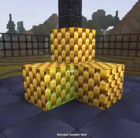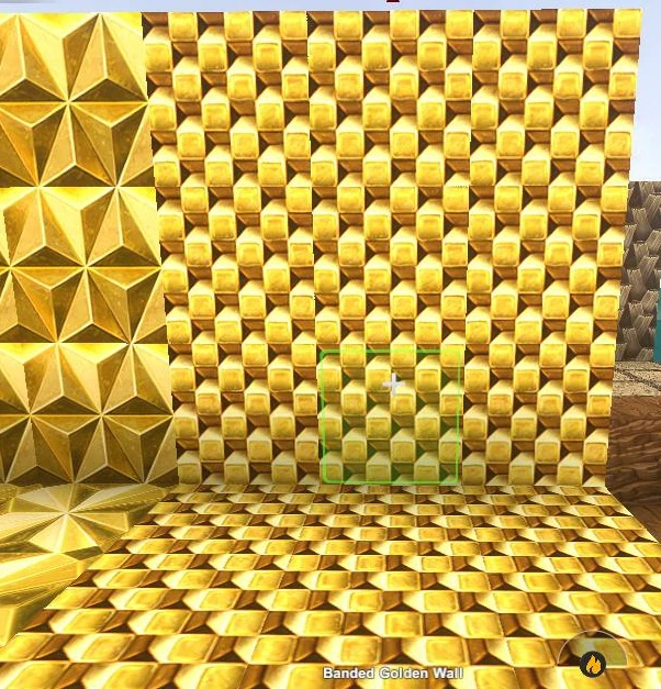The Banded Golden Wall is a golden colored building-block structured like it was made of rows of chains on all 6 sides.