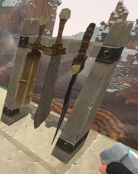 Since purchasable building kits and textures for blocks, equipment, etc. are required to keep Creativerse alive, player Mods are not allowed that could obviate Playful's own offers. Still, no purchasable weapon is stronger than the free Lumite Sword, and all purchasable Armor parts are just Costumes that will merely change the look of your player character.