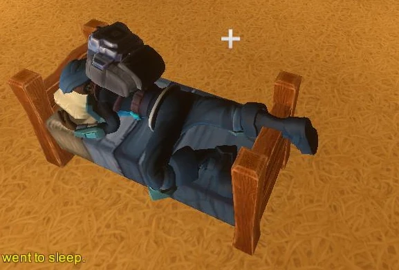 sleeping in a Bed of any kind will also nowheal your character in Creativerse (since update R41), also sleeping will let the (rest of) ingame-night or -day end within seconds if all players presently on the world use a Bed at the same time. However taking elemental damage or damage from an attack will interrupt sleeping and healing immediately