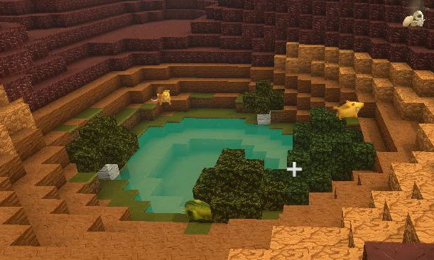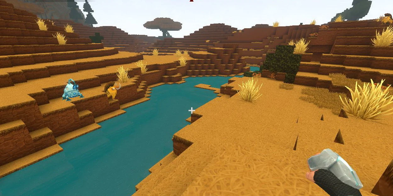 explore the large but finite pre-generated (not individually randomly/procedurally generated) game world/s with their different natural surface biomes, caves and underground layers, all of them populated with endemic Creatures (no villages, buildings/ruins or NPCs though, except for event times)