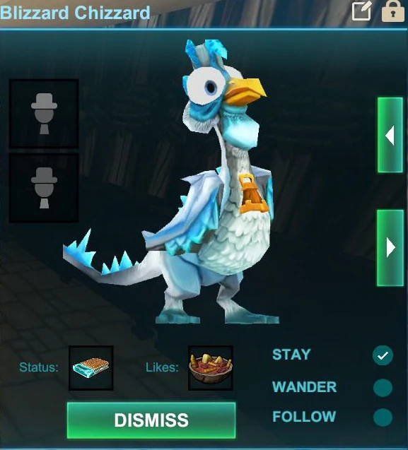 This peaceful but defensive bright blue hybrid of chicken and lizards is the arctic version of the Chizzard. It spawns on Snow, in Mountains, Tundras, Taigas, Frozen Deserts, icy planes and ice-covered oceans during the day.