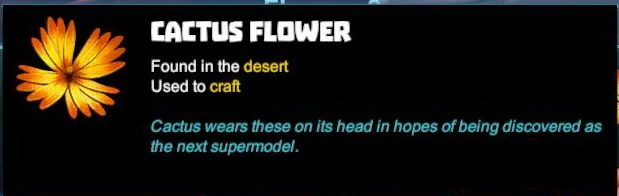 "Naturally" generated Cacti as part of the template worlds of Creativerse consist of 2-5 blocks of either Cactus or Cactus Flowers. Cactus Flower are useful ingredients for a number of recipes, like Corruption Resistance Potions and Lumite Mining Cells that will require Cactus Flowers to be made, but also Basic Health Potions, Stone Mining Cells, Speed Potions, Heart-Shaped Boxes and many other recipes that will accept any kind of Flowers.