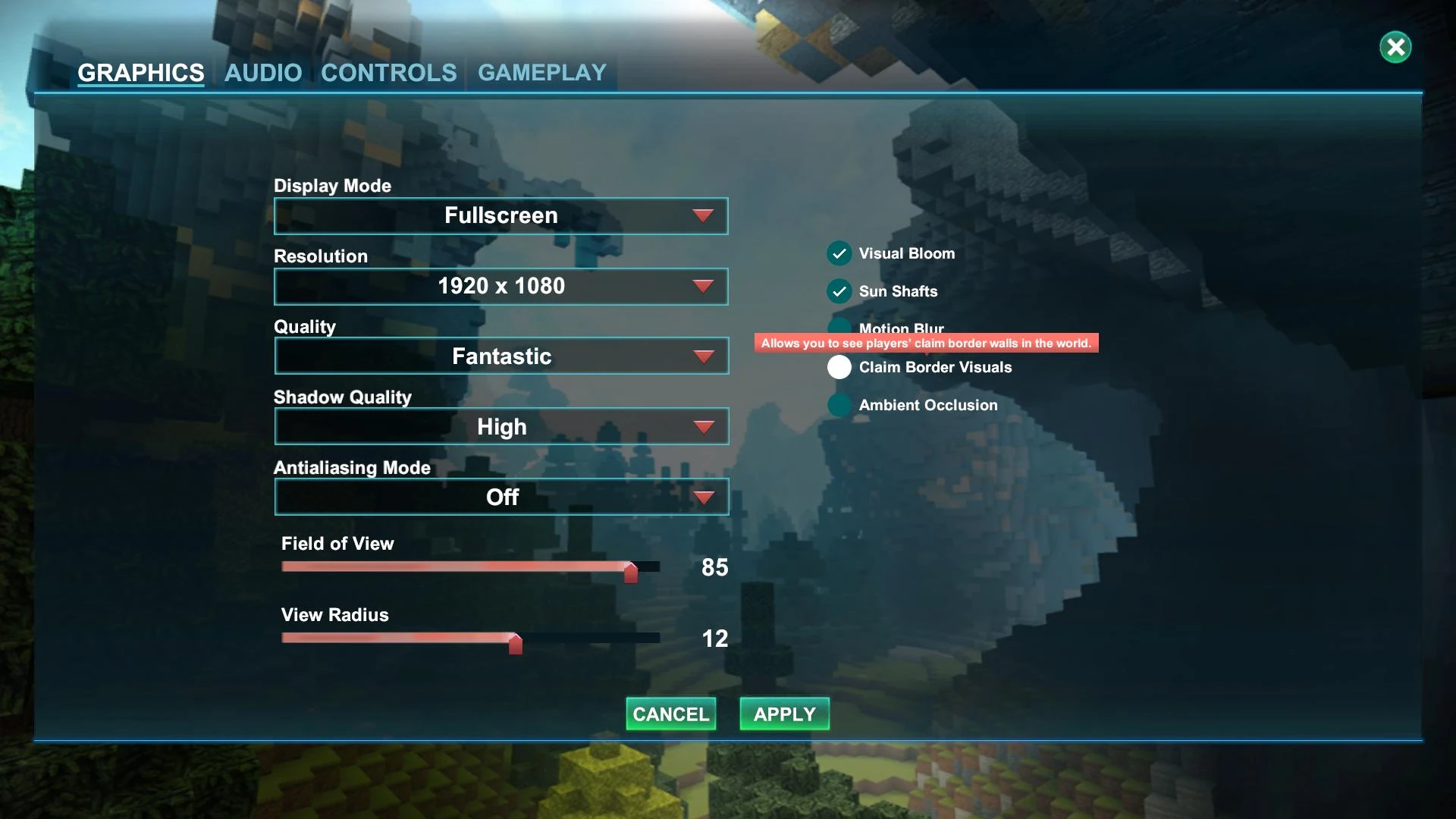 - to revert claims to their "natural" state by choice. This is only possible on Creative Worlds for players who are allowed to use Creator Mode there. When this button (not a constantly effective option) is clicked and confirmed, everything that has been built on this claim will vanish, and everything within the borders of the claim will be set back to the original state when the game world was created. This will also restore all ore nodes that have been extracted. Anything that has grown or spawned after world creation (like tree flowers, beeswax or crops) will disappear. Kindly note that underground tunnels and stairs that you have dug will also be gone for good, plus all torches and other lights that have been placed underground (like on the Corruption layer) will simply vanish forever.