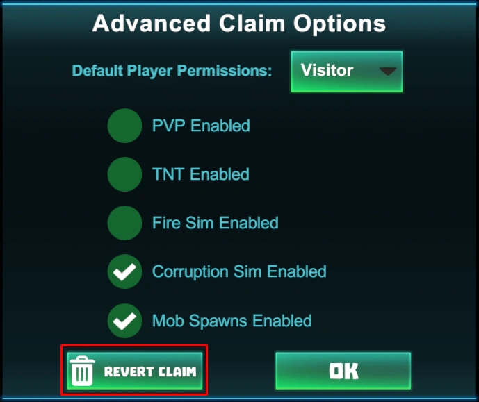 If you as a world owner want to prevent players from using this claim option, you need to manually disallow them to use Creator Mode on your game world via player option, then the claim revert option will not appear in the claim management advanced options.