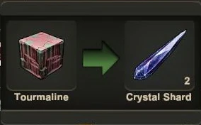 You can obtain crystal shards as loot or pet-harvest from Pigsies or sometimes from other creatures too, like from Chizzards or Night Chizzards. You can also process 1 block of Tourmaline each into 2 Crystal shards, but mind that Tourmaline is a rather rare find on the Stalactite layer and Lava layer, even though you can loot or pet-harvest it from Warmworms too.