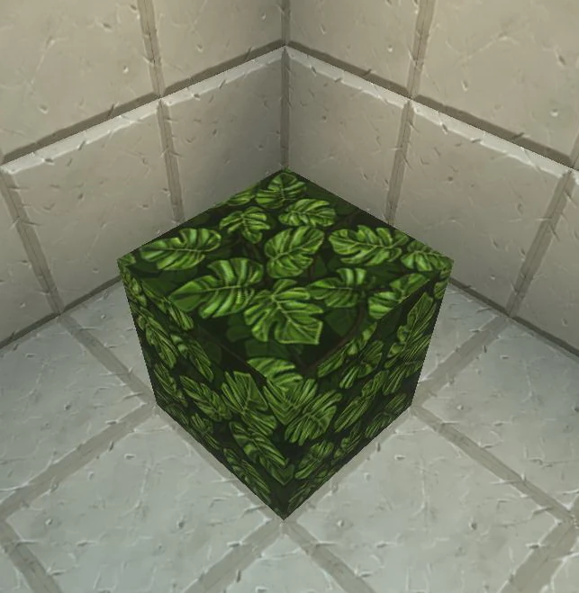 Shredded Leaves can be used as building blocks, but be careful: Shredded Leaves are just as flammable as fresh leaves when being placed. You can process Shredded Leaves blocks into Shredded Leaves Columns by putting them into a Processor (no crafting recipe is required). Shredded Leaves can also be used for crafting, mainly for Thatched Walls, Thatched Roofs, many types of Beds and several types of Carpets.