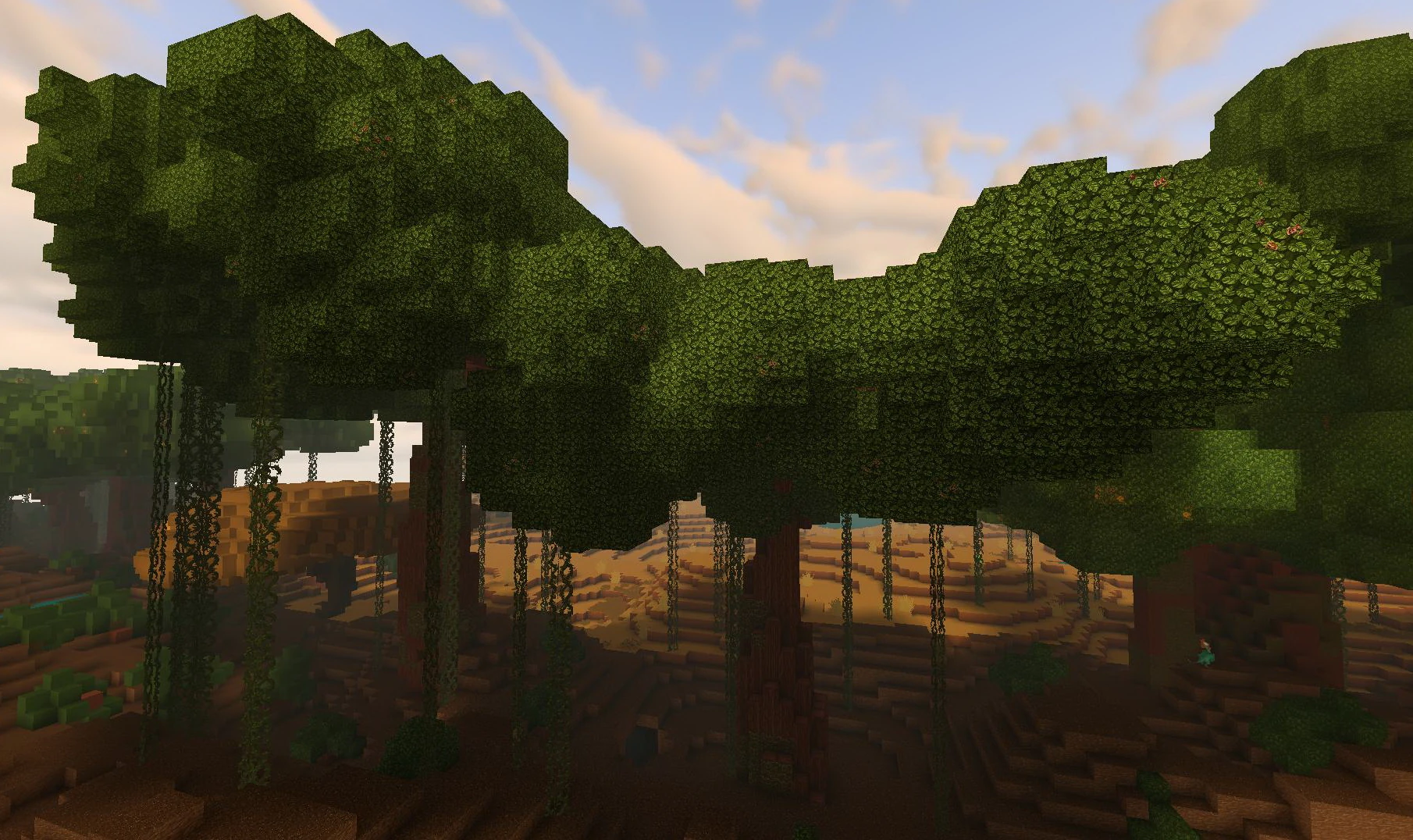 Dark Wildwood Leaves can be found in Jungle biomes on rather rare dark-leaved Wildwood-trees with ruddy Wildwood Flowers amongst their leaves and Vines hanging down from their treetops. The Wildwood Flowers that are usually embedded in these Dark Wildwood Leaves do not glow in darkness, but will turn into the glowing kind if harvested.