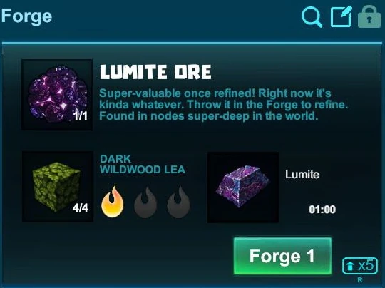Uncorrupted Dark Wildwood Leaves can be placed as solid blocks for decoration and can also be used for building; however they can make Creatures spawn on them, mainly Chizzards and Leafies during the day, and Night Chizzards and Night Leafies in darkness.