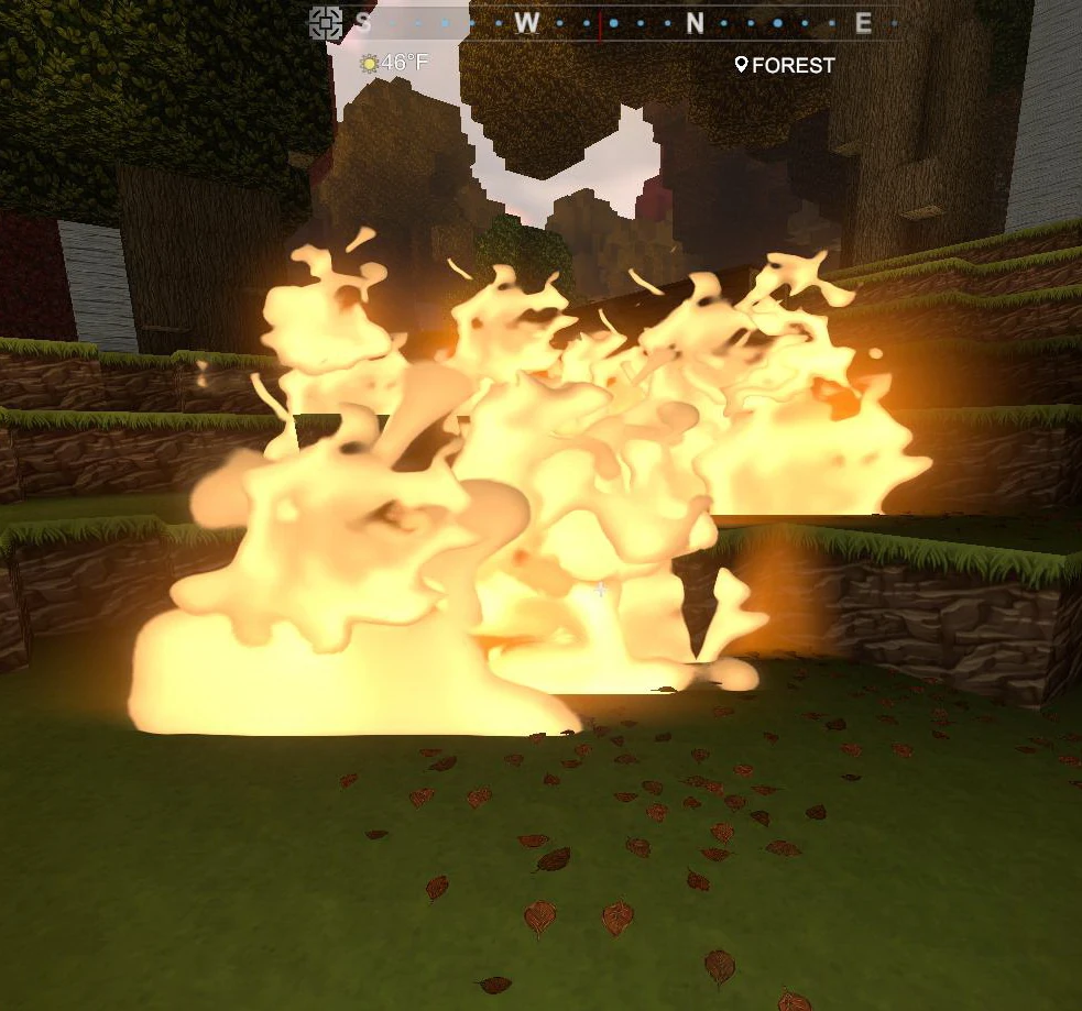 If Fallen Leaves, Autumnwood Leaves blocks and/or Autumnwood blocks start burning, the flames are then able to spread to other nearby flammable blocks in hot biomes and Swamplands, even across gaps of 1-2 blocks on game worlds and player claims where the "fire spreading" option is enabled. This way a whole wooden building or forest (especially Weepwood trees, Wildwood trees, Parchwood and Shorewood though) can burn down in the worst case.