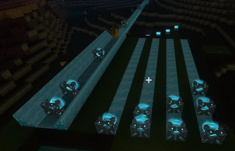 Attention: when sliding too fast over a long reach, the game might not be able to load chunks equally fast, resulting in perceiving missing block textures and the slide being stopped; or even a sudden drop of the player character into underground layers in the worst case. Even though changing the performance settings (in the game options) might help, it is strongly recommended to rather make do with sliding at a slower speed.