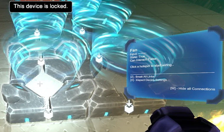 If a player character jumps into a Fan that is blowing upwards, the jumping height and/or distance will be much higher/farther than normally (beware of falling damage though when landing).