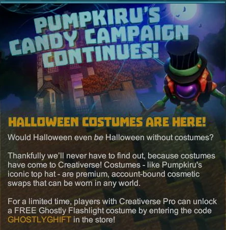 While "Pro" players were able to use the Ghostly Flashlight costume right away, even F2P-players could buy or obtain this costume skin, but could only actually use it after buying or obtaining the "Pro"-DLC for Creativerse directly on Steam ( http://store.steampowered.com/app/515710/Creativerse__Pro/ ).