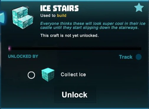 Ice can also be used for crafting, for example Ice Stairs, Diamond Mining Cells, Freeze Bombs, Blizzard Bombs, Snowball Turrets and several objects from the Frost Bundle that can be bought in the Store for Coins.