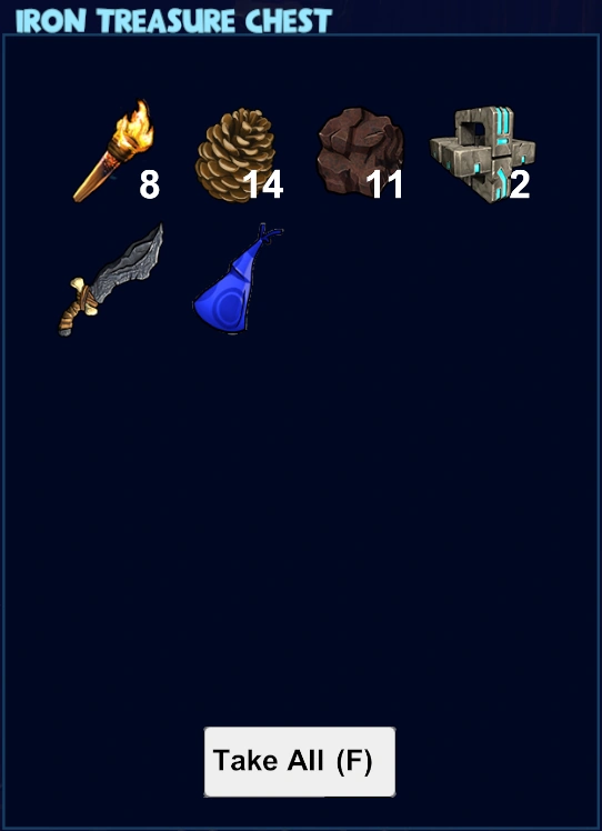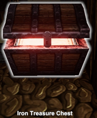 Iron Treasure Chests are Treasure Chests that spawn in the Stalactite layer in darkness. They have a red glow.