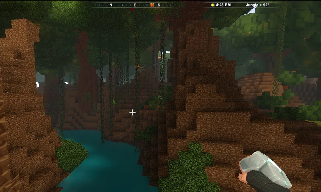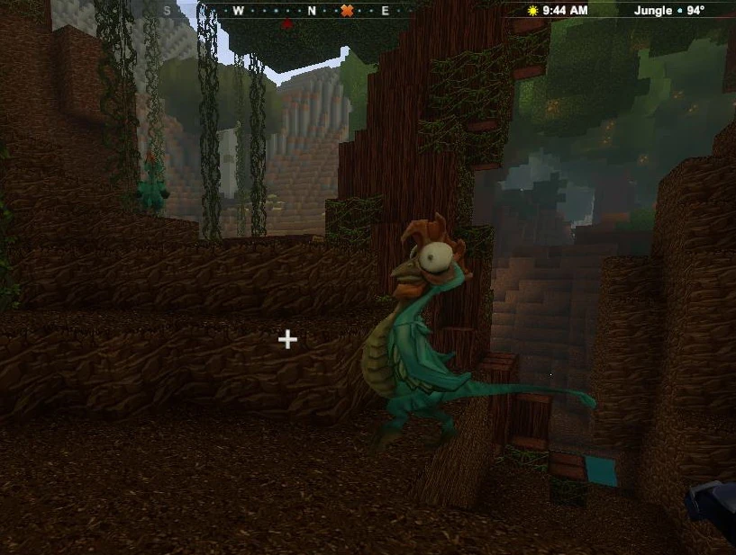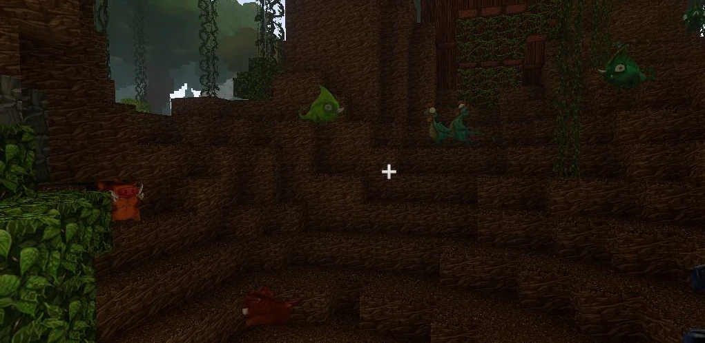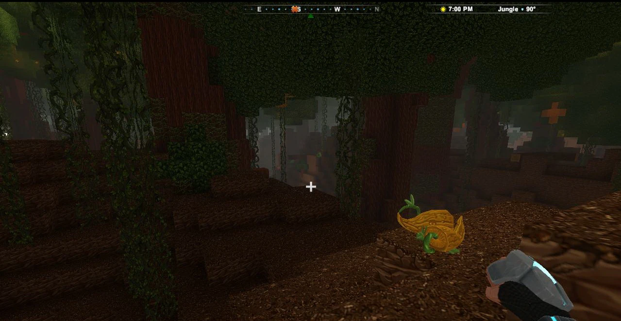You can recognize Jungle-biomes by their tall Wildwood trees adorned or even covered by many Vines. Be careful when advancing, because jungles are home to aggressive red Feral Pigsies that can spawn on blocks of Detritus during the day.