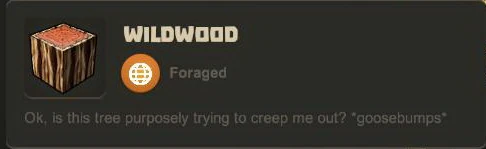 Wildwood trees come in different types and sizes; from small bushlike ones on the ground to giant Wildwood trees covered in Vines all over. You can often spot giant Wildwood trees on the area map as they are usually adorned with a bit of snow on top. Also a few parts of Wildwood trees feature Dark Wildwood Leaves and also non-glowing Wildwood Flowers - however these Flowers will just turn into common Wildwood Flowers when harvesting, and if you place them they will be the usual glowing kind.