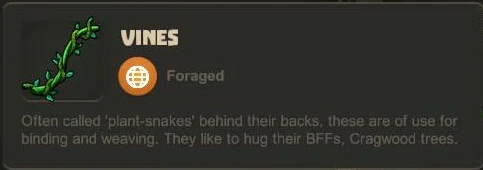 By taking blocks of Wildwood from Wildwood trees the recipe for Bungalow Walls is unlocked (which unlocks even more bungalow-themed blocks when crafted), and by taking Vines for the first time the recipe for Thatched Walls will be unlocked. Wildwood Flowers can be used to craft Poison Resistance Potions and a number of other recipes that will accept all kinds of Flowers as ingredients.