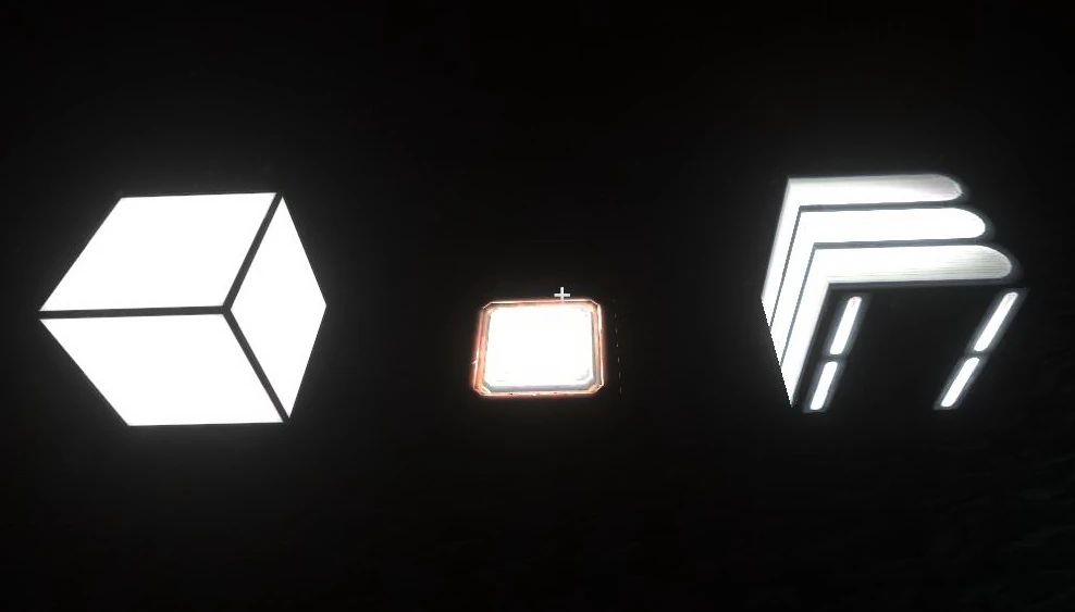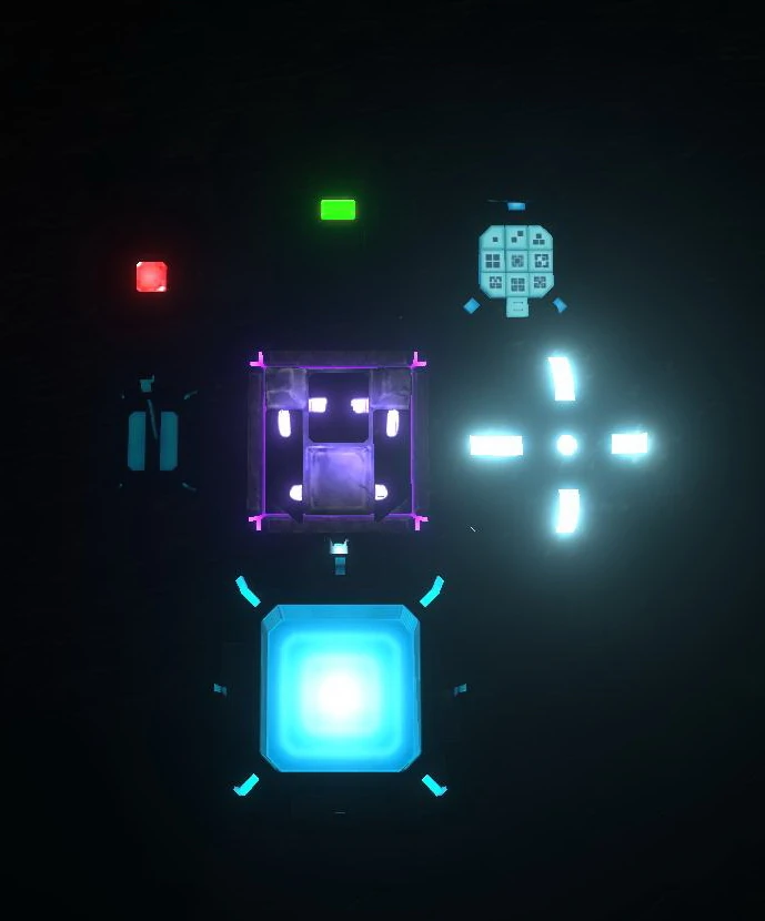 activated Switches - players can spot the blue glow of the patterns on a switch from afar, but only if its activated. If a Switch is deactivated, its blue patterns are only slightly visible in the dark.