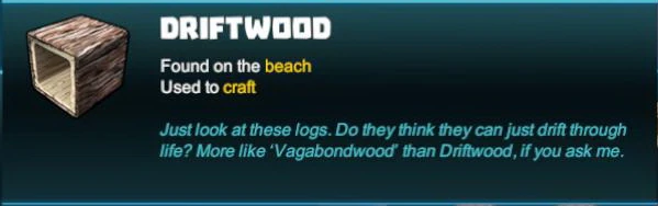 Driftwood can be found lying on sandy Beaches close to the Ocean and also strewn all over the Ocean floor underwater, often next to Coral-structures.