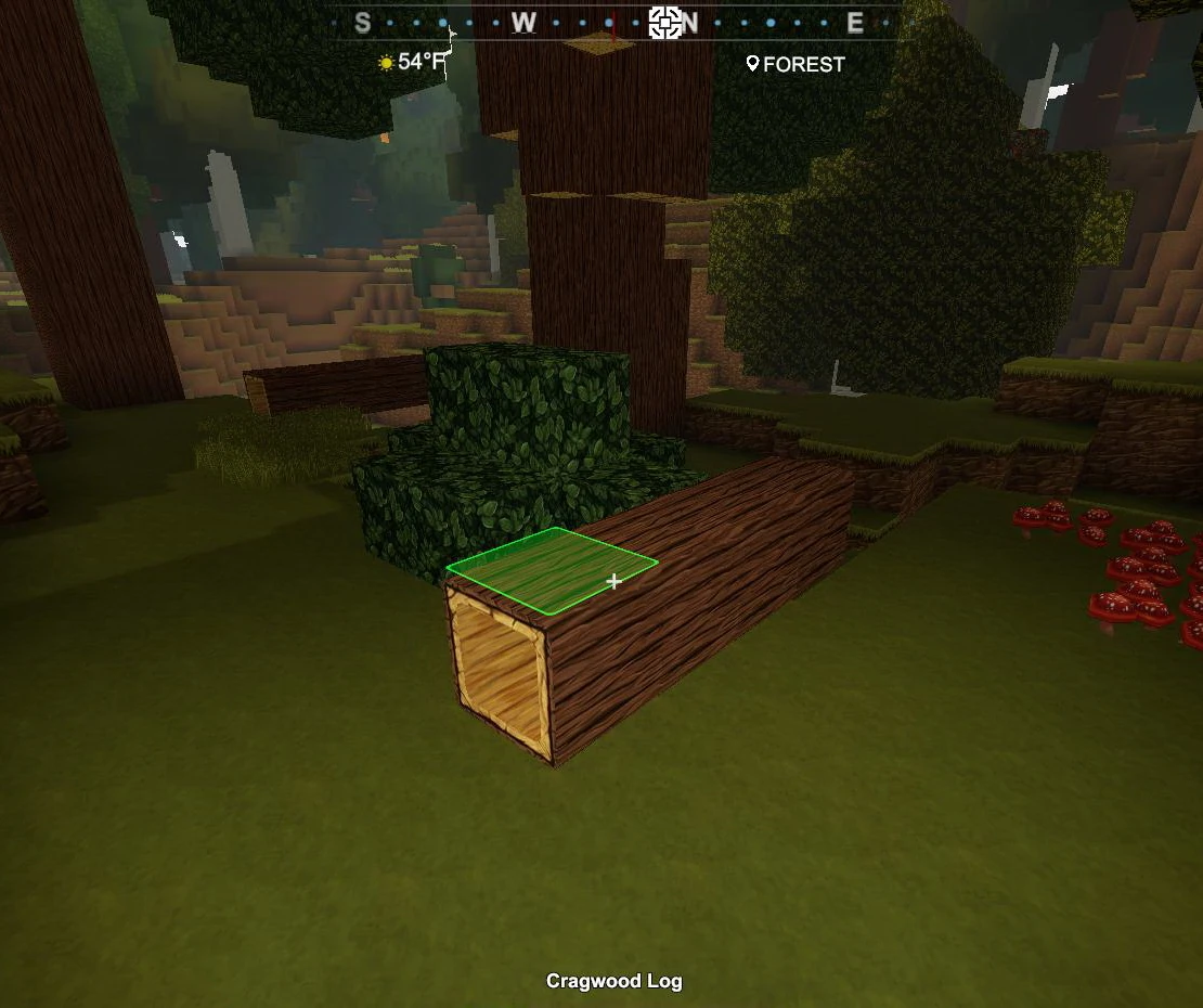 Cragwood Logs can be found lying on green grass in Forests and Woodlands, but also under Wildwood-trees in the Jungle, under Elderwood-trees in the Taiga and in the water of lakes or rivers even in Grassland-biomes on the river-bed or ground of lakes often consisting of Mud.