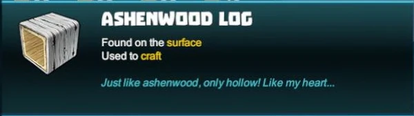 Any kind of Log except Ashenwood Logs can be used to craft a number of crafting recipes that will accept any kind of Wood (except for Corrupted Wood).
