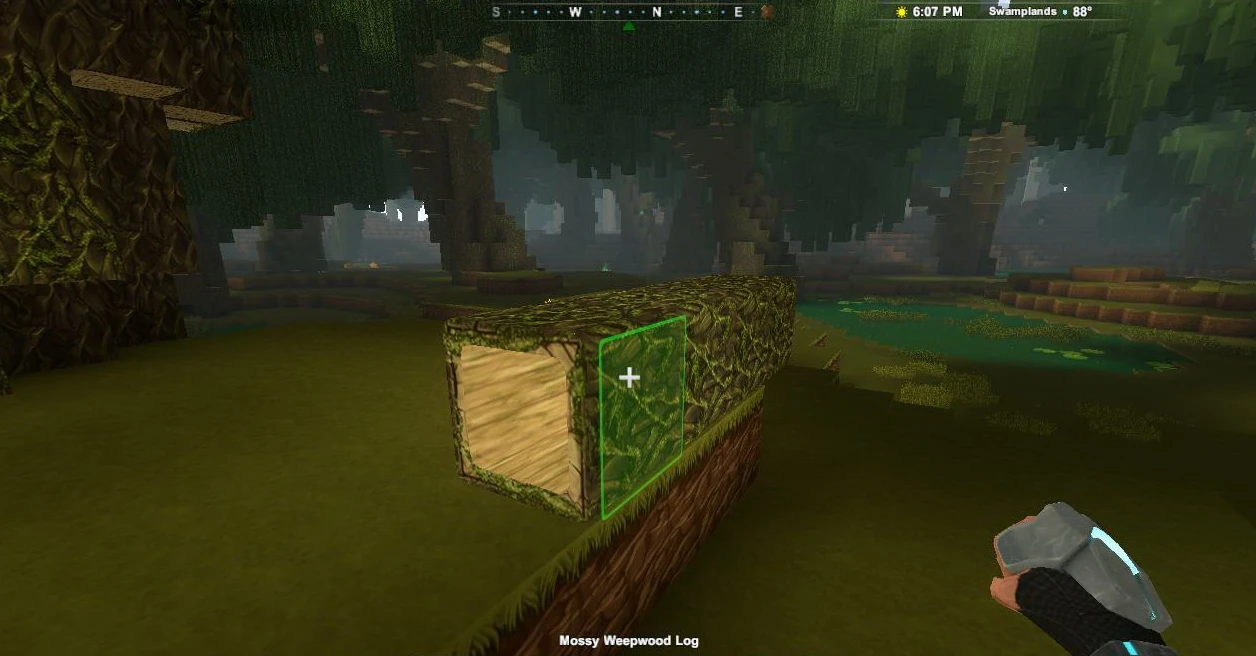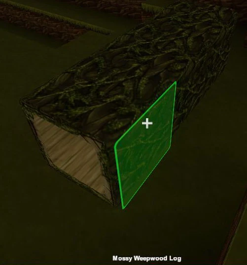 Weepwood Logs and Mossy Weepwood Logs can both only be found only in Swamplands on the ground made of green Grass or in shallow Bog Water, somewhere close to Weepwood-trees.