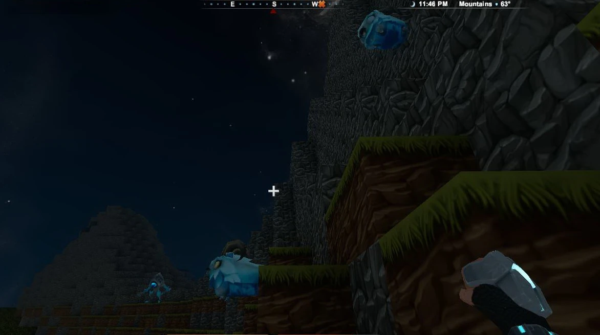 As for animals, Rambeaus will spawn on Mountains on or close to Peakstone during the day, while blue Arctic Mirus will only spawn on Peakstone or on Snow during the night or in darkness. Also Blizzard Chizzards can spawn on Snow during the day, and Night Chizzards during the night. From Caves ordinary green Mirus, Night Pigsies and/or Night Rocksters might occasionally emerge as well.