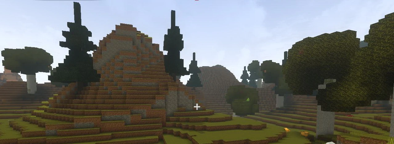 Only a few trees will grow in Mountain-biomes, rather on the feet of Mountains and in valleys in between defined by Grass and/or Dead Grass - mainly pine-like often snow-covered Elderwood-trees with Blue Flowers on top and only rarely Beeswax in these colder climate-zones, occasionally also birch-like Ashenwood-trees, adorned with Red Flowers in their tops and Moss on their stems here or there. Red Mushrooms, Tallgrass, Turnips and/or Lettuce can only - rather rarely - be discovered in valleys or on foothills of Mountains in warmer areas.