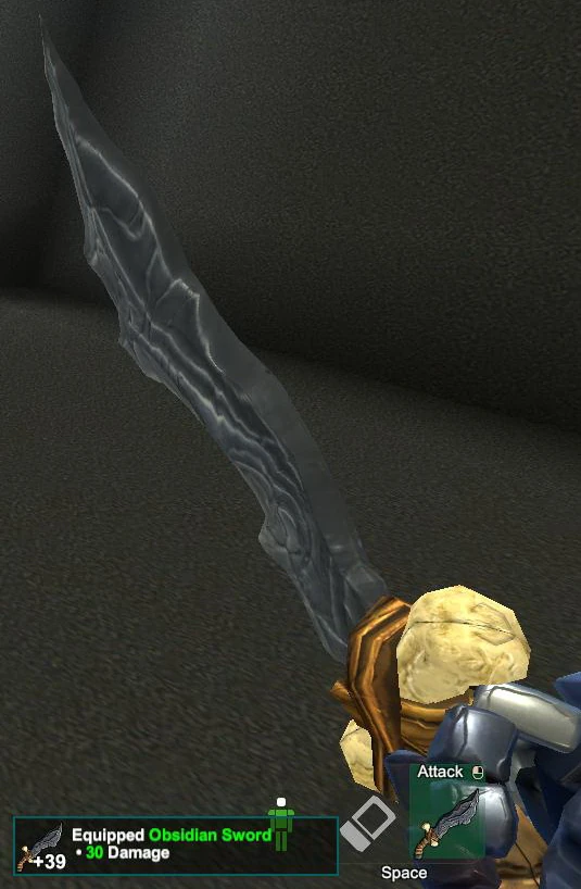 The Obsidian Sword is a melee weapon that does 30 damage points.