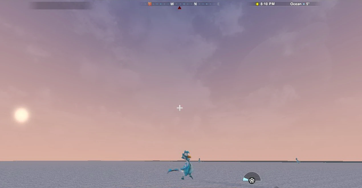 The only fauna can be found close to Shore. Rocksters (and their night variant) and Pebbles are a frequent sight, Blizzard Chizzards and at night Arctic Mirus spawn on frozen ocean biomes. Nothing spawns in the open ocean yet (as of R42 in May 2017).