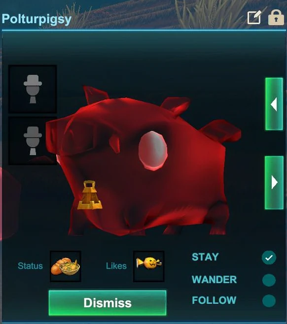 As Pets, Polturpigsies will only desire Pumpkiru Candy. It is still possible to feed them any other type of Food, including Mushrooms. You can feed your Pets only by opening their pet window (right-click on the according Pet while pointing your cursor at it or press "f" as the default key while looking at your Pet) and then either right-click on the icon of the Food you want to feed in your inventory or quick-bar or drag & drop the Food over the pet window with your left mouse button.