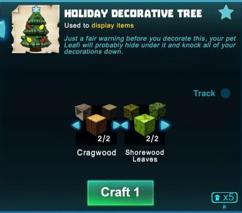 Other than that, Shorewood Leaves can also be put on display by placing them into the slots of display containers like Placemats, Stone Wall Shelves, Hidden Temple Altars, Galactic Grav-Chambers, Frozen Containers, Holiday Decorative Trees, Snow Buried Containers, Holiday Mantles, Wood Planters, Flower Pots or the like, where they will usually be reduced in size and cannot be rotated, corrupted nor burnt.