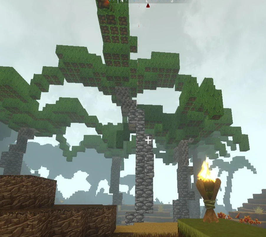 As long as the fire spreading option of game worlds is enabled (which it is by default), placing torches or any other items with open flames or fiery blocks like Hardened Lava directly under blocks of Shorewood Leaves or uncorrupted Shorewood (of tree stems and branches), can burn the Leaves and Wood blocks to nothingness in hot environments that make a heat meter/scale show up, like Beaches, Jungles, Oceans, Savannahs or on the Lava layer, but also in much cooler Swamplands.