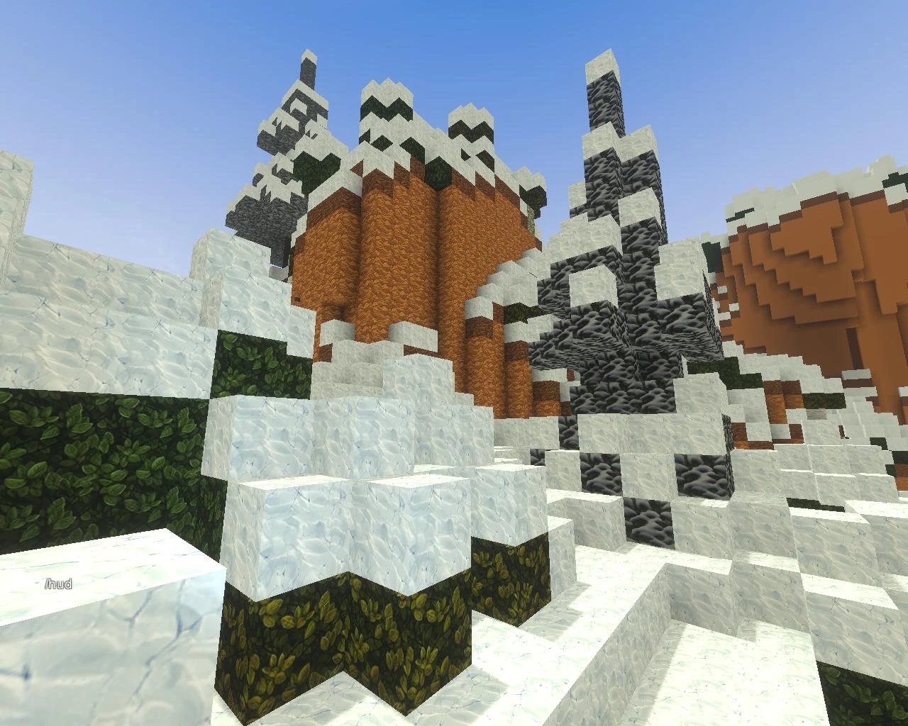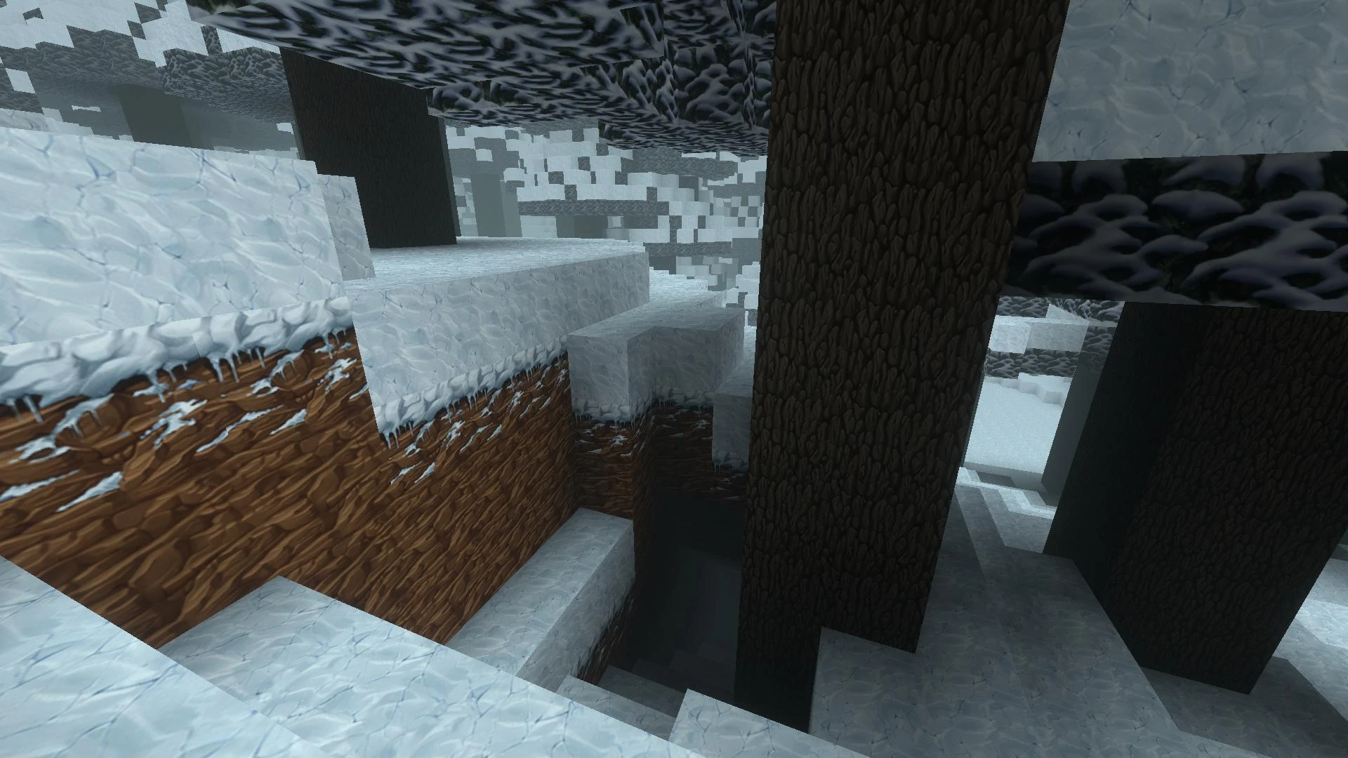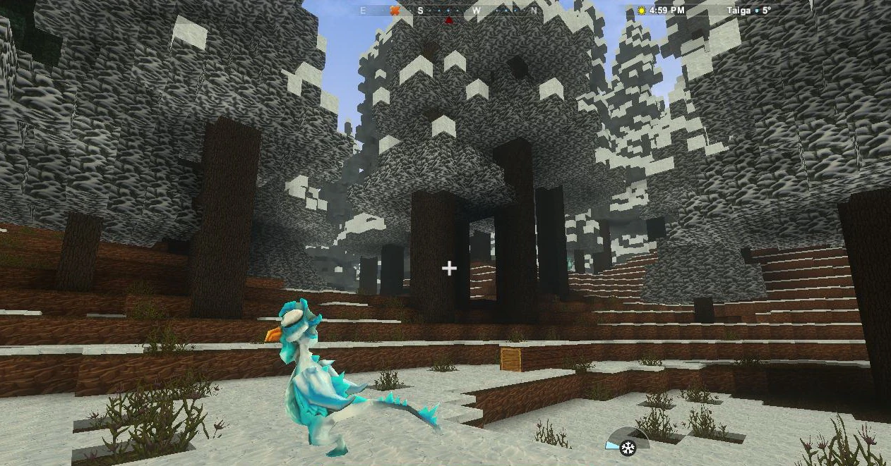 Large cubic blocks of Snow usually cover very cold areas like the ground as well as Elderwood trees in Taigas and the tops of high Mountains, now and then also the very tips of high Canyons formations and the treetops of giant Wildwood trees in Jungle biomes.