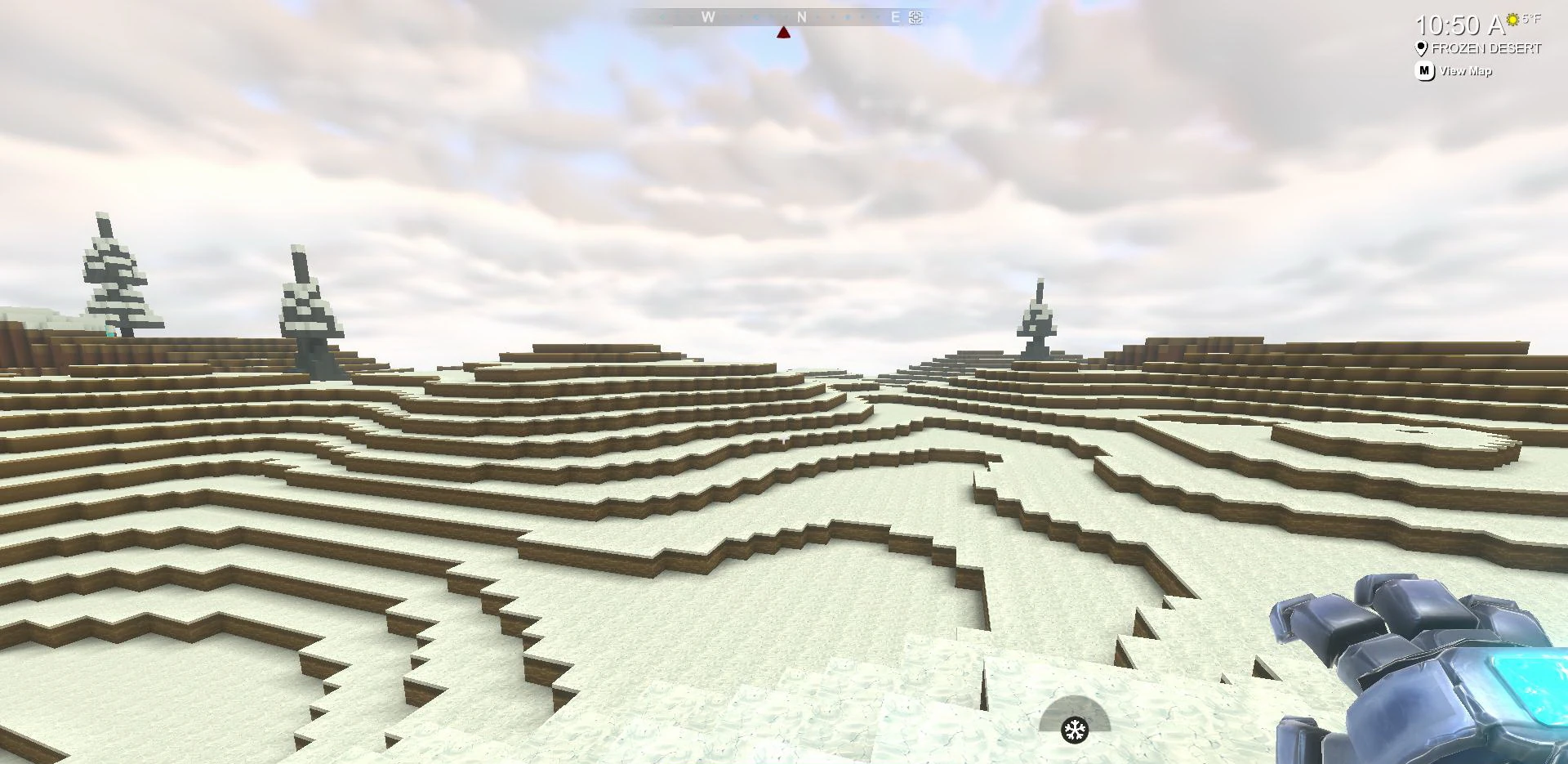 CAUTION! Walking on Snow or even more so on thin layers of Snow (even when placed into warmer biomes ) will bring up a freeze scale that will slowly fill itself with white color the longer your player character stays in the cold. By staying on Snow for too long without any precautions, your player character will start to receive cold damage over time and can freeze to death in the end.