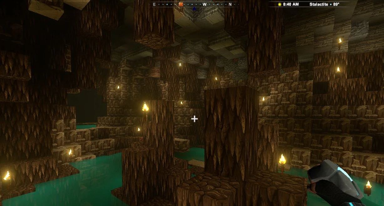 The Stalactite layer is made of blocks of Stalactite, Siltstone, patches of Saltrock, Mud, Mold and sometimes Glowing Mushrooms. Not many caves are leading down here, but still a number of connected larger caves traverse this layer.