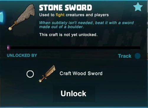 Crafting/taking a Stone Sword is the unlocking requirement for the crafting-recipe for the Obsidian Sword.