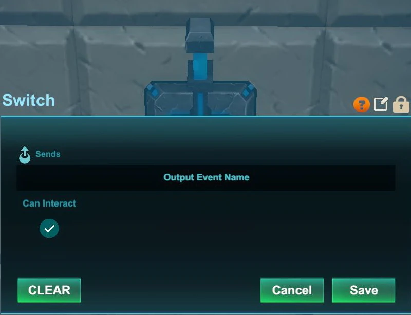 Switches do not have a "reset" option, unlike Pressure Plates and Number Pads. Switches can be activated/deactivated by all players including visitors, no matter the permission settings of the Switches, even on player claims and within Adventures. This also applies to Industrial Switches, Medieval Switches, Industrial Levers and Galactic Terminals. Disabling the option "can interact" will lock a Switch so it cannot be used even by its owner unless the option is activated again by using an Wiring Tool.