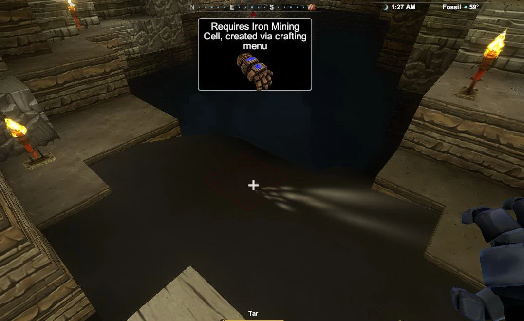 Scooping up Tar requires an Iron Mining Cell or better to be equipped. All Power Cells will lose durability when foraging Tar.