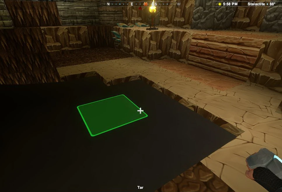 If placed in hot environments like the Lava layer or even at hot places in Jungles or Savannahs (mind the temperature displayed in the top right corner please), Tar will immediately start to burn by itself, even without being set ablaze by any flame-sources nearby.