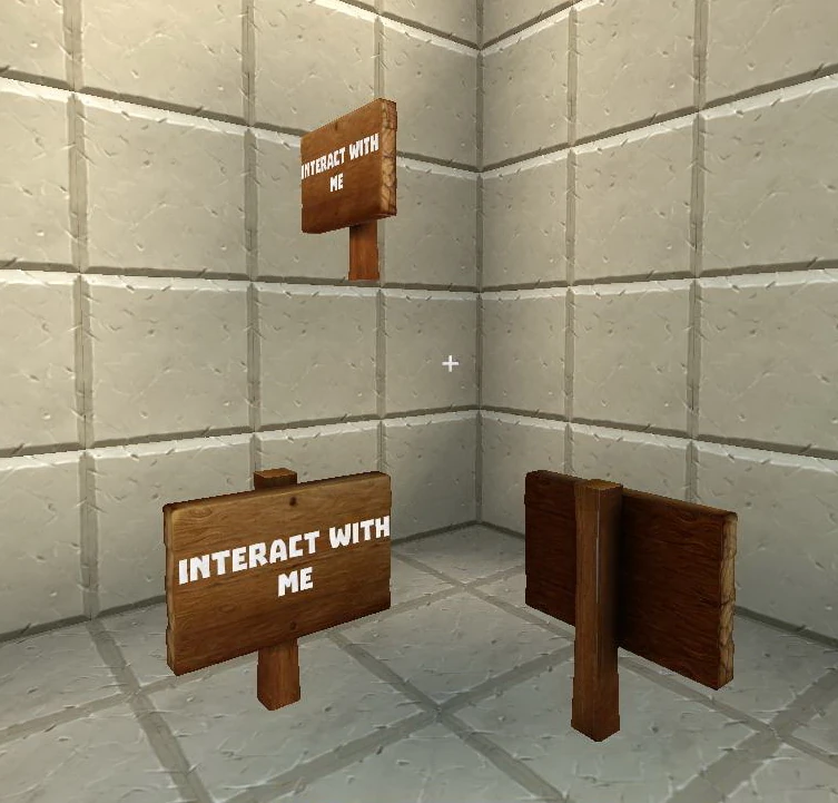 These pieces of "furniture" are fireproof wooden flat sign boards on a wooden post that will accept up to 35 characters, but can also display Creativerse icons (sprites) and a few smileys. They cannot be wired.