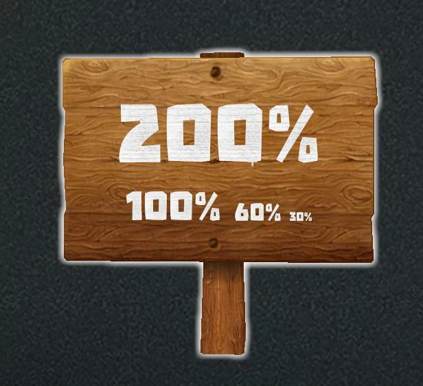 Syntax: <size=x.xx> or <size= x.xx%> Example: <size=2>This text is large Example: <size=200%>200% <size=100%>100% <size=60%>60% <size=30%>30% Sets the font size and influences the size of sprites